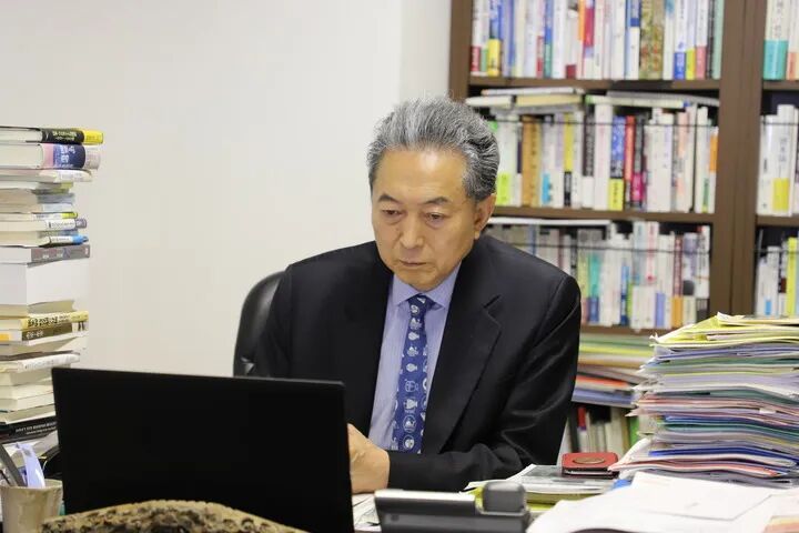 2022年7月20日,日本前首相鸠山由纪夫在东京办公。新华社记者钞文摄