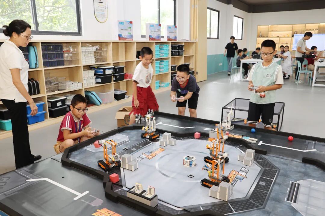 据了解,2022年,该校建成专用科创楼,添置了人工智能类设备、教育机器人、无人机等一批科创教育设备,并引入校外专业机构,构建“普及+提升”双轨科创体系:小学1-6年级开设智能机器人、无人机、编程、航模等课程,激发学生兴趣;初中设立科创特长班,系统培养科技特长生。在430课后服务时间,开设趣味无人机、机器人—动力机械、机器人—编程挑战等18个社团。