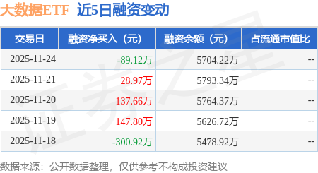 本站消息,11月24日,大数据ETF(515400)融资买入599.45万元,融资偿还688.56万元,融资净卖出89.12万元,融资余额5704.22万元。