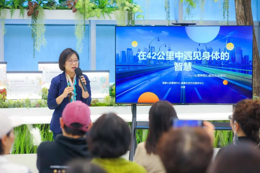 线下主场活动通过权威分享、实战交流与互动体验三大板块,全方位赋能参与者。国家心血管病中心健康生活方式医学中心常务副主任、中国医学科学院阜外医院心脏康复中心主任冯雪发表题为《在42公里中遇见身体的智慧——从营养到心脏的生命修行》的主旨演讲。她从健康生活方式与医学的角度,系统阐述了跑步、营养与体重管理之间的科学关联,强调体脂率管理比单纯控制体重更为重要,并提醒跑者赛前应做好身体评估,高风险人群建议提前完成心血管相关检查。