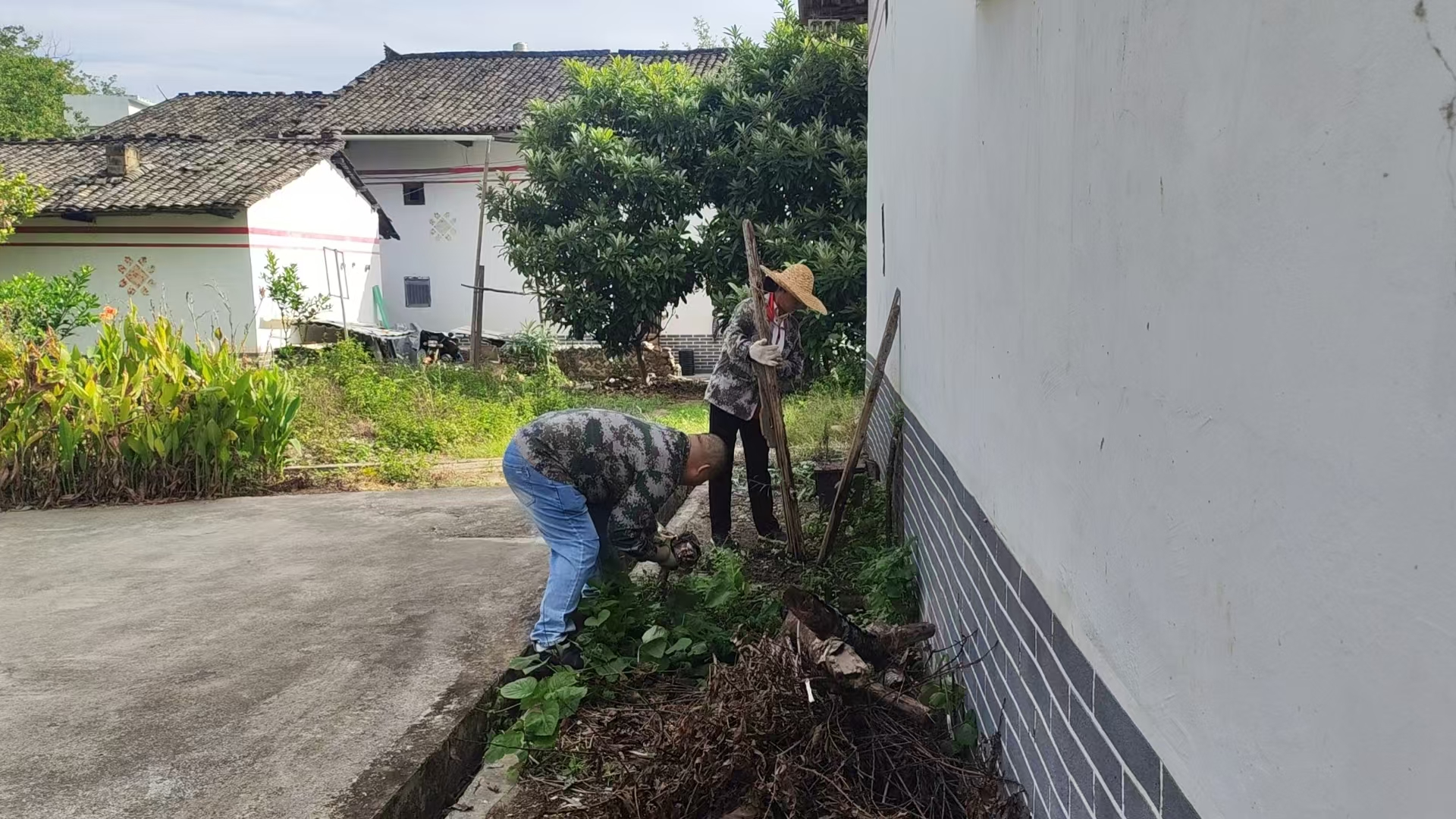 村民刘大姐夫妇自行整治自家门前环境